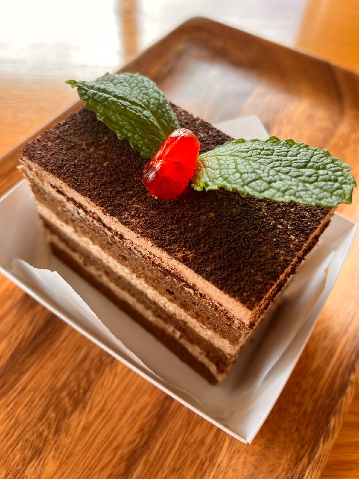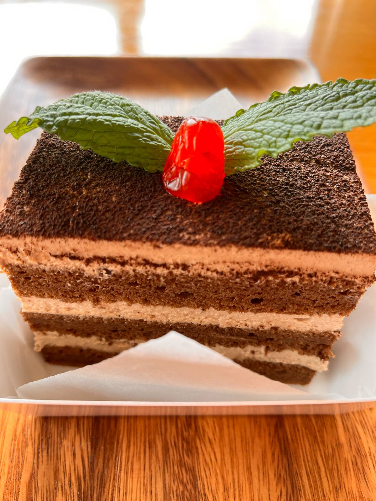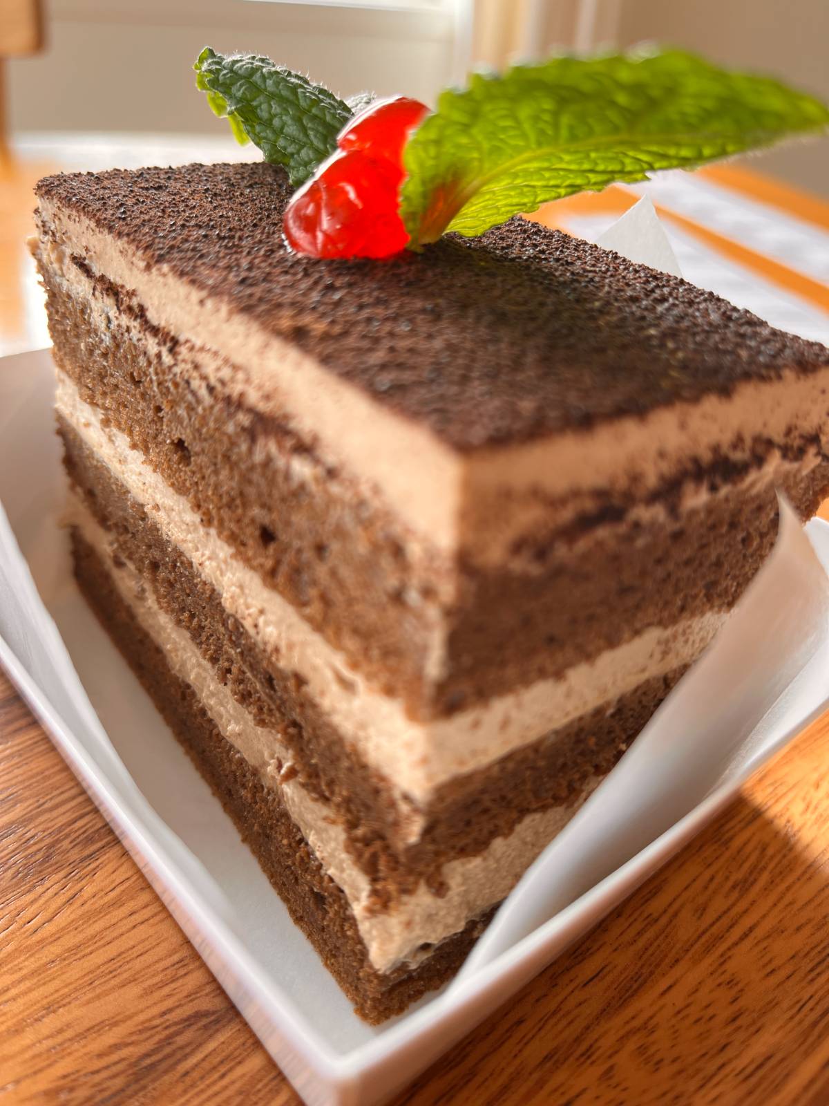 A soft, moist cake layered with rich coffee-flavored cream for a smooth, aromatic indulgence.